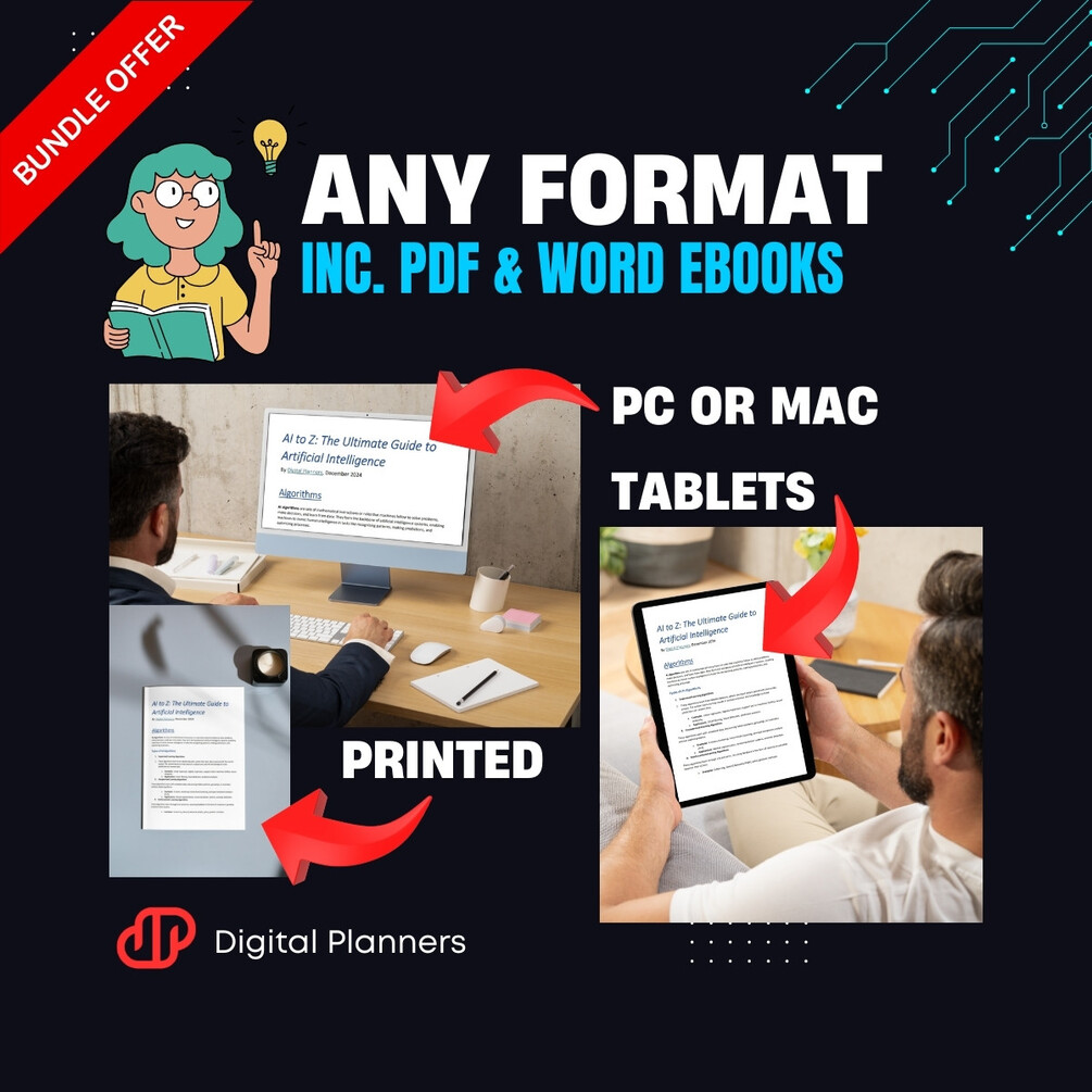 Are you ready to dive into the fascinating world of Artificial Intelligence? AI to Z: The Ultimate Guide to Artificial Intelligence is your go-to resource for understanding the core concepts and cutting-edge applications of AI. With 220 pages of expertly crafted content, this eBook is your instant Digital Download designed to make AI approachable, whether you're a beginner or looking to expand your knowledge.
