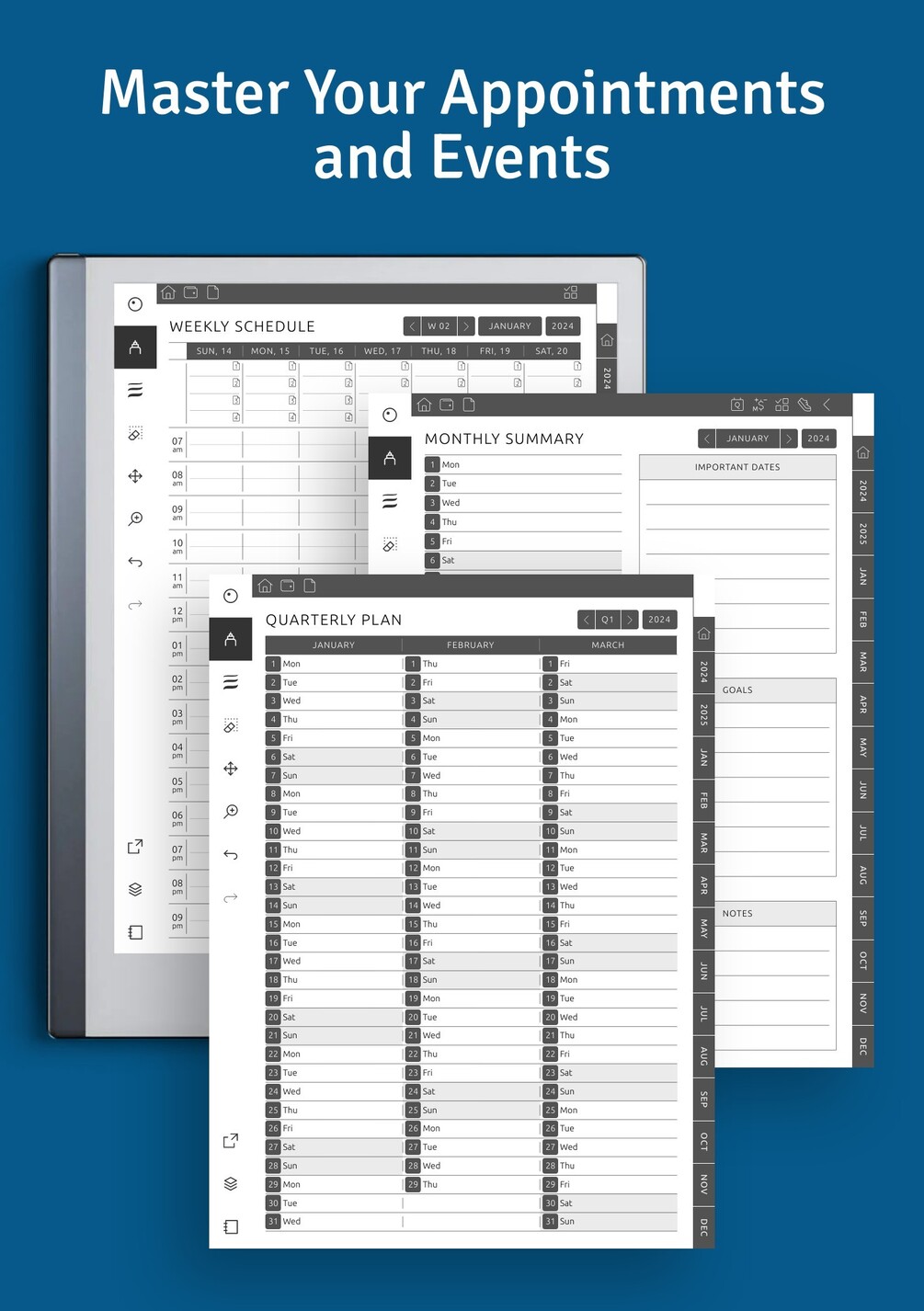 This is more than just a budget planner! Customize your planner with four adaptable pages for Yearly Goals, Monthly Reviews, and Weekly Routines. With templates for every facet of life, the reMarkable Budget Planner ensures you stay organized and focused, whether you're managing your finances or your day-to-day tasks.ย